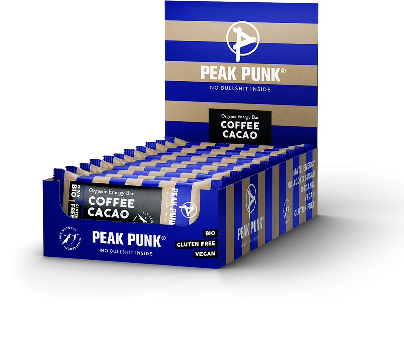 Der Coffee & Cacao von Peak Punk boostet dich mit 21.7mg Koffein direkt durch die Kaffeeplantagen hoch auf den Gipfel. Kannst die Zahnstocher also wieder aus deinen müden Augenlöchern nehmen, die Ärmel nach hinten krempeln und deinen Alltag in die Hände nehmen. Was auch immer du machst, mach es richtig. Was im Riegel drin ist? Lebensfreude von Südamerika, eine schöne Prise Peru und viel spanisches Temperament.